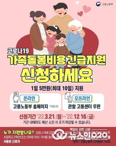 (뉴스인020 = 김나현 기자) ◆ 코로나19 가족돌봄비용 긴급지원 신청하세요!