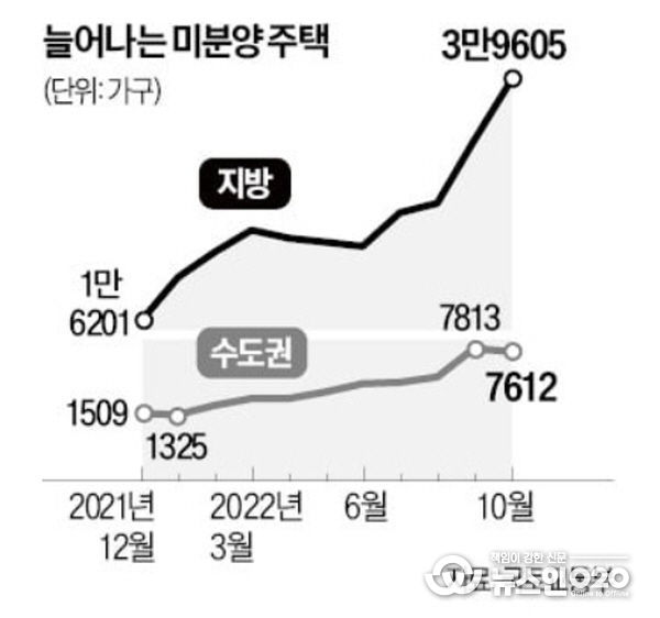 미분양시장을 살펴보면 2022년 10월말 기준 전국미분양 주택은 총 4만 7217호로 집계되고 있는데 이는 작년말(1만7710호)와 비교하면 2배나 넘게 증가한 것이라 한다