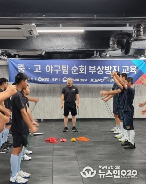 (뉴스인020 = 김민석 기자) KBO(총재 허구연)는 7월 24일(월) 인천 동산중학교에서 야구부 선수 30명을 대상으로 유소년 순회 부상 방지 교육을 실시했다.