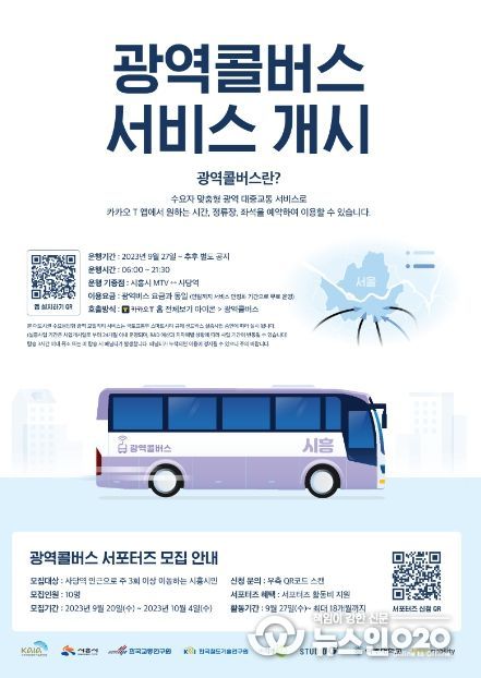 (뉴스인020 = 김성길 기자) 시흥시가 27일부터 국토교통부 대도시권광역교통위원회에서 추진하는 수요응답형 광역교통서비스 광역콜버스 운행을 전국 최초로 개시한다.