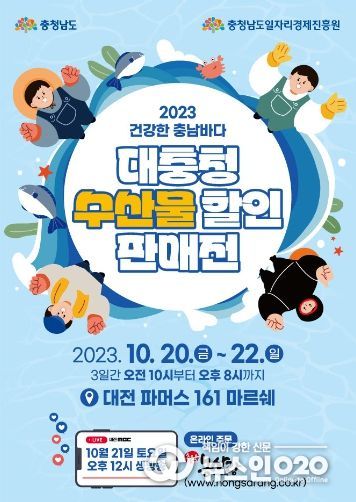 (뉴스인020 = 최정직 기자) 충남도는 오는 20일부터 22일까지 3일간 대전에서 충남의 우수 수산물을 저렴한 가격에 구매할 수 있는 ‘건강한 충남바다 대충청 수산물 할인 판매전’을 개최한다고 19일 밝혔다.