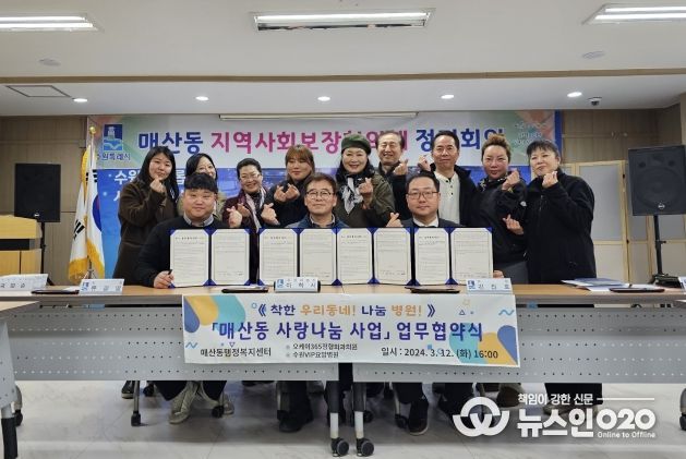 (뉴스인020 = 박용우 기자) 팔달구 매산동은 지난 12일 오케이365정형외과의원, 수원VIP요양병원과 업무 협약(MOU)을 체결했다.