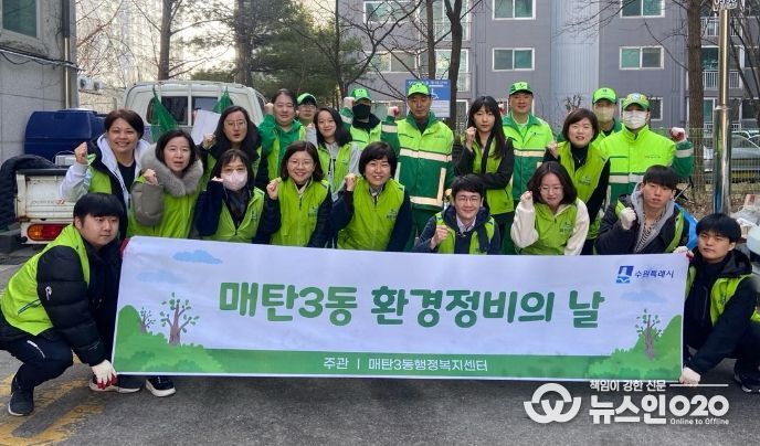 (뉴스인020 = 박용우 기자) 수원시 영통구 매탄3동은 지난 15일 새봄을 맞이하여 겨우내 묵은 쓰레기를 일제 수거하는 환경정비 활동을 펼쳤다.