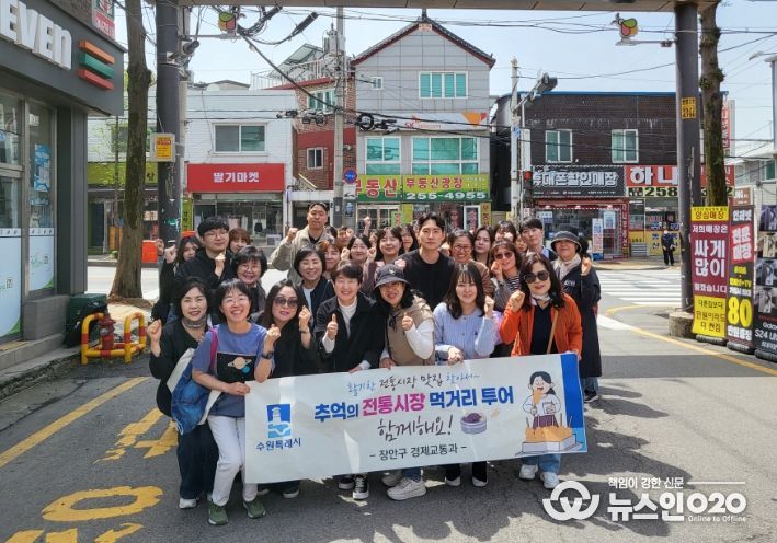 (뉴스인020 = 박용우 기자) 수원시 장안구는 17일, 경기침체로 어려움을 겪고 있는 전통시장 상권을 활성화하기 위하여 반딧불이 연무시장에서 추억의 전통시장 먹거리 투어를 진행했다.