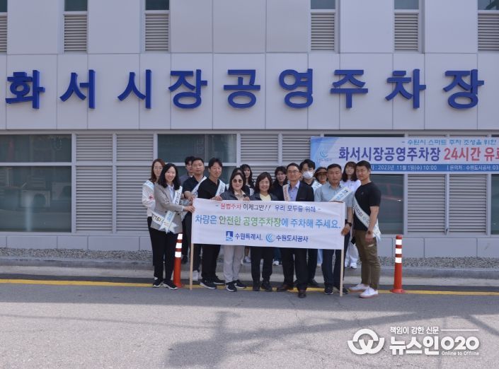 (뉴스인020 = 박용우 기자) 수원시가 공영주차장 이용을 활성화하기 위해 17·21일 화서시장공영주차장 등 5개소에서 공영주차장 이용 활성화 캠페인을 펼쳤다.
