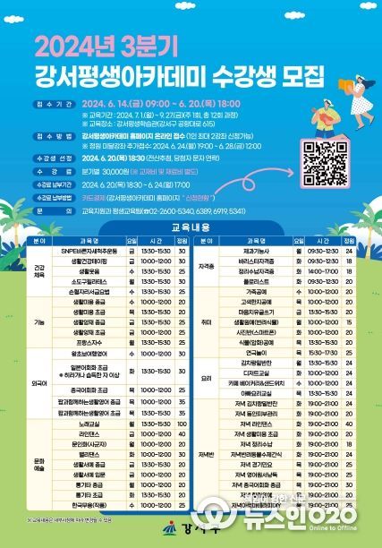 신청방법과 강좌 등 더 자세한 사항은 ‘강서구 누리집-공지사항’에서 확인할 수 있다.