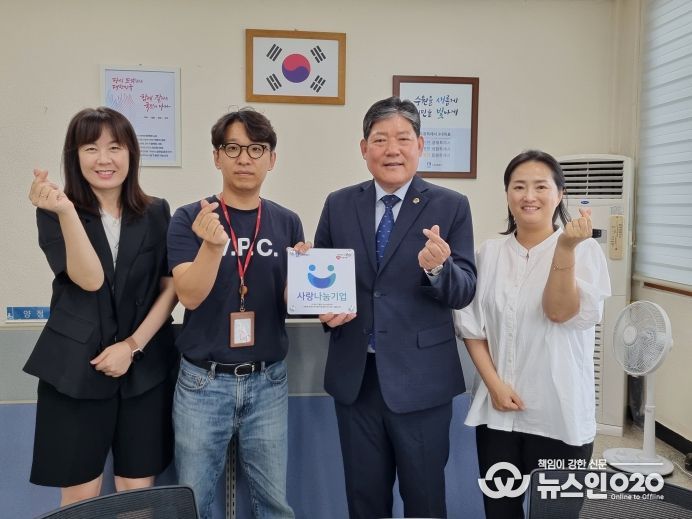 (뉴스인020 = 박용우 기자) 수원시 장안구 정자1동은 지난 20일, 지역복지를 위해 동참하고 있는 관내 기업인 SK마이크로웍스에 ‘사랑나눔수원’ 현판 전달식을 가졌다.