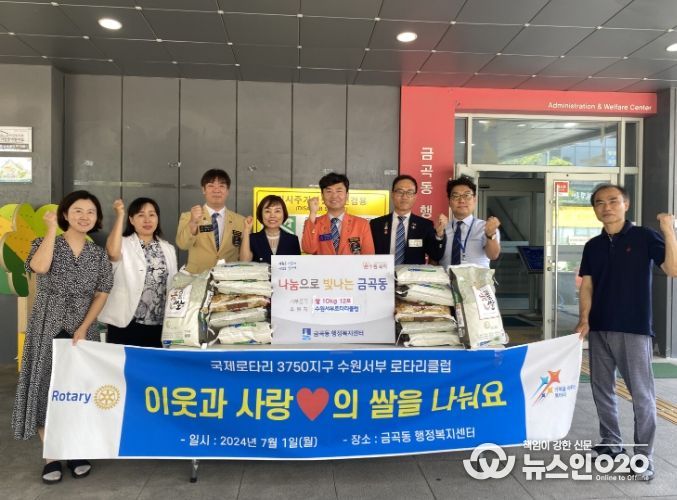(뉴스인020 = 박용우 기자) 수원시 권선구 금곡동은 지난 1일 국제로타리 3750지구 수원서부로타리클럽에서 어려운 이웃을 위해 백미 120kg을 후원받았다.