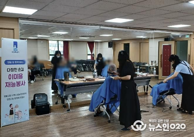 (뉴스인020 = 박용우 기자) 수원시 영통구 영통2동 지역사회보장협의체는 지난 19일 행정복지센터 3층 대회의실에서 저소득 가구 14명에게 ‘영통2동 행복미용실’이·미용 봉사를 진행했다.