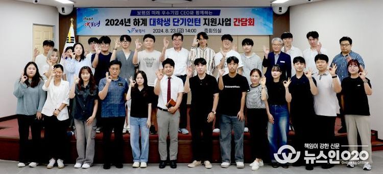(뉴스인020 = 최정직 기자) 보령시는 23일 시청 중회의실에서 김동일 시장을 비롯해 대학생 단기인턴 사원과 참여기업 관계자 등 30여 명이 참석한 가운데‘대학생 단기인턴 지원사업 간담회’를 개최했다.
