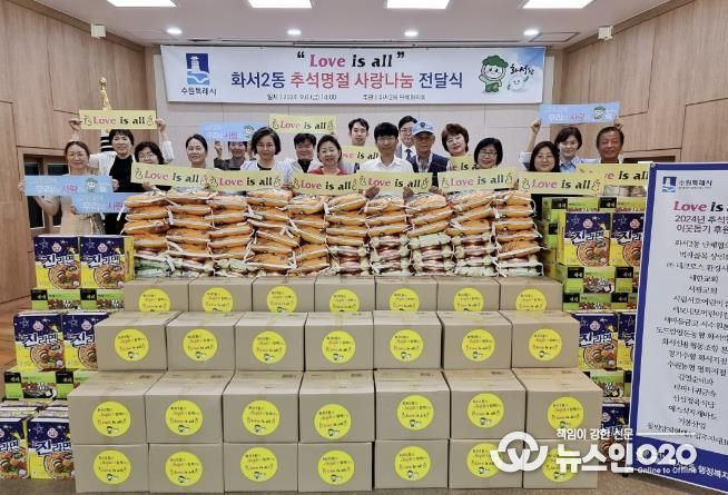 (뉴스인020 = 박용우 기자) 수원특례시 팔달구 화서2동은 지난 6일, 추석 명절을 맞이해 나눔의 선을 실천하고, 서로가 서로를 돌아보며 소외된 이웃이 없는 따뜻한 돌봄마을을 조성하고자 추석 명절 사랑나눔 전달식을 개최했다.