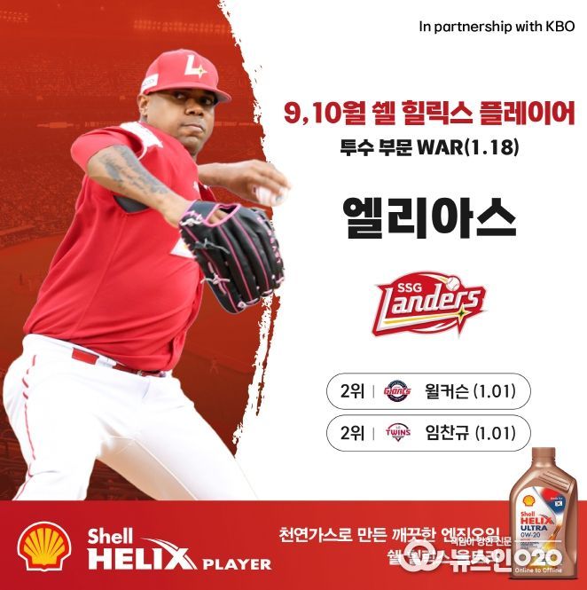 (뉴스인020 = 김민석 기자) KBO와 한국쉘석유주식회사(이하 ‘한국쉘’)가 함께 시상하는 ‘쉘힐릭스플레이어’의 2024 KBO 리그 9-10월 수상자로 SSG 엘리아스와 NC 데이비슨이 각각 선정됐다.
