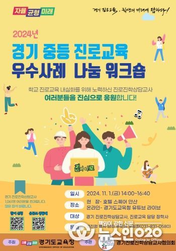 (뉴스인020 = 박용우 기자) 경기도교육청이 학교 진로교육 내실화를 위해 ‘경기 중등 진로교육 우수사례 나눔 워크숍’을 안산에서 개최한다.