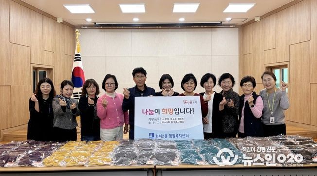 (뉴스인020 = 박용우 기자) 수원시 팔달구 화서2동은 지난 30일 자원봉사캠프 소속 자원봉사자들이 목도리 150개를 화서2동 행정복지센터에 기부했다고 밝혔다.