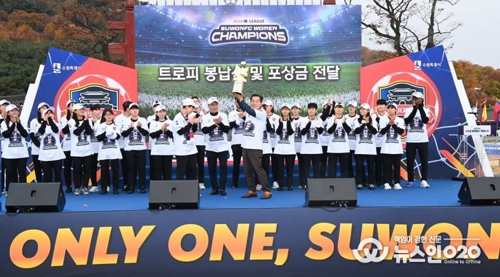 이날 행사는 수원시립합창단 공연, 이재준 시장 인사말, 선수단 소개, 우승트로피 봉납식, 포상금 전달, 우승 세레머니, 팬사인회 등으로 진행됐다.