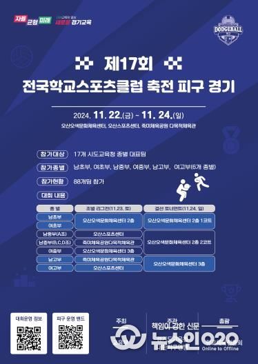 (뉴스인020 = 박용우 기자) 경기도교육청은 제17회 전국학교스포츠클럽축전 피구 경기 개회식이 오는 23일 오산오색문화체육센터에서 열린다고 밝혔다.