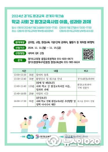 (뉴스인020 = 박용우 기자) 경기도교육청이 학교와 사회의 환경교육 연계 강화와 지역 중심 환경교육을 위해 오는 26일 북부청사, 27일 남부청사에서 ‘경기 환경교육 관계자 워크숍’을 운영한다.