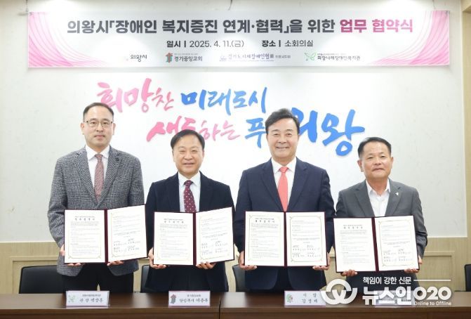 (뉴스인020 = 김성길 기자) 의왕시는 11일 시청 소회의실에서 장애인 복지 증진 연계·협력을 위한 업무협약식을 개최했다.