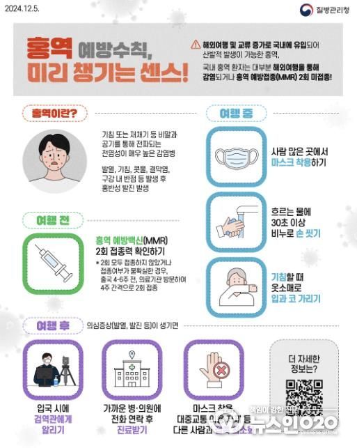(뉴스인020 = 김성길 기자) 보령시는 전 세계적으로 홍역이 크게 유행함에 따라 해외여행을 계획 중인 시민들에게 홍역 유행 국가 확인 및 출국 전 예방접종 완료와 예방수칙 준수를 강조하고 있다.