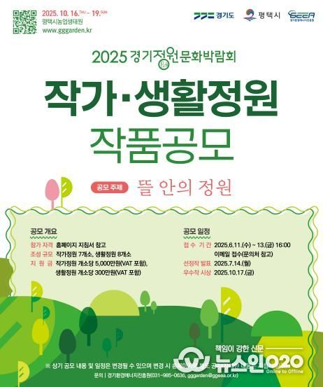 이정수 경기도 정원산업과장은 “경기정원문화박람회는 지역의 정원 기반시설(인프라)을 확장하고, 도민 녹색복지를 확대하는 의미 있는 문화행사”라며 “올해 공모전이 평택의 자연과 조화를 이루며, 공공성과 예술성, 지속가능성을 아우르는 정원문화의 새로운 모델이 되기를 기대한다”고 말했다.