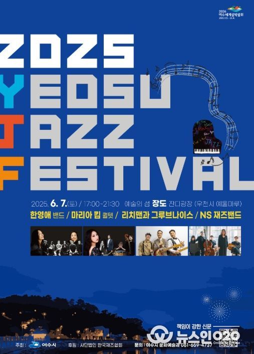 (뉴스인020 = 김성길 기자) 여수시는 오는 6월 7일 오후 5시부터 9시 30분까지 예술의 섬 장도에서 ‘2025 여수재즈페스티벌’을 개최한다.