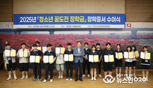 (뉴스인020 = 김성길 기자) 나주교육진흥재단(이사장 윤병태)은 지난 9일 ‘2025년 청소년 꿈도전 장학금’에 선발된 나주시 중·고등학생 81명(중학생 41, 고등학생 40)에게 1인당 최대 100만 원씩 장학금 총7천 973만4천원을 지급했다고 10일 밝혔다.