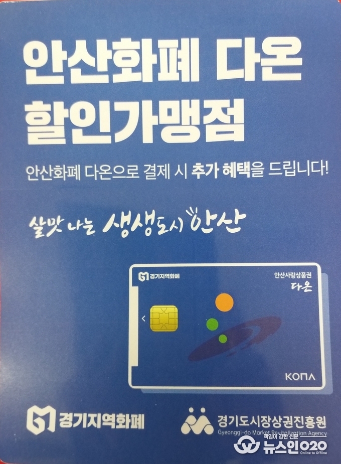 (뉴스인020 = 김성길 기자) 안산시(시장 윤화섭)는 안산화폐 ‘다온’ 카드 결제가능 매장을 대상으로 경기도시장상권진흥원의 ‘우대가맹점 지원 사업’이 진행한다고 29일 밝혔다.