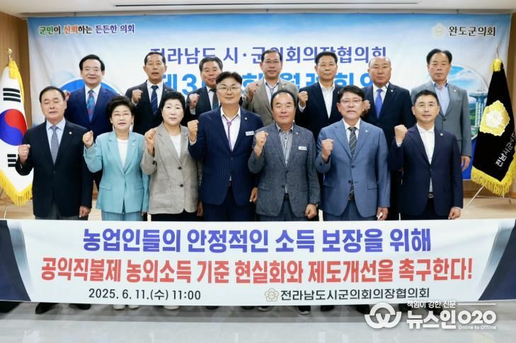 (뉴스인020 = 김성길 기자) 영광군의회가 제안한 ‘공익직불제 농외소득 기준의 현실화 및 제도 개선 촉구 건의안’이 6월 11일 완도군에서 열린 제303회 전라남도시군의회의장협의회 월례회의에서 채택됐다.