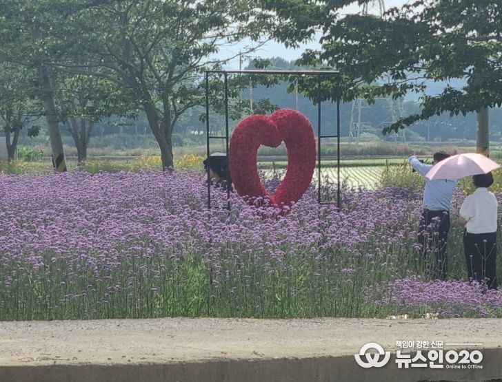 특히 버들마편초는 짙은 보라색 풍광을 만들면서 부흥마을 앞을 지나가는 사람들과 차들의 발길을 붙잡고 자연스럽게 휴대폰 카메라를 준비하게 만들고 있다.