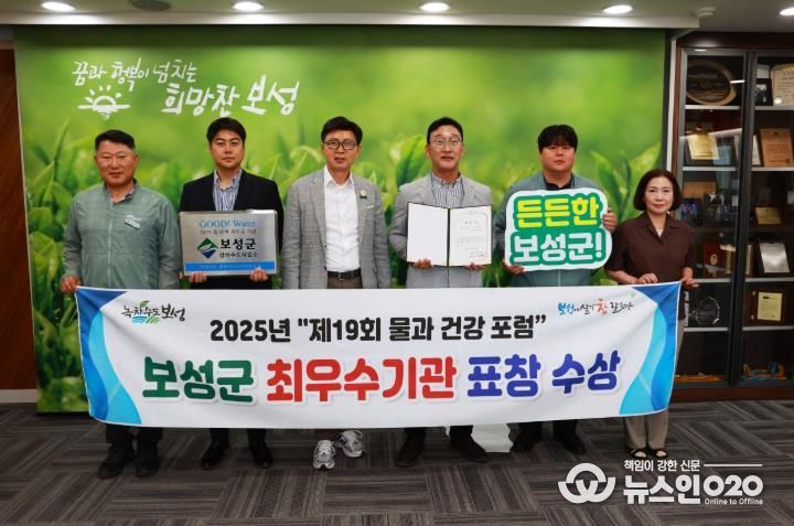 (뉴스인020 = 김성길 기자) 보성군은 지난 18일 대전광역시 K-water 인재개발원 40주년 기념관에서 열린 ‘제19회 물과 건강 포럼’에서 ‘물관리 최우수기관’으로 선정돼 기관 표창을 수상했다고 밝혔다.