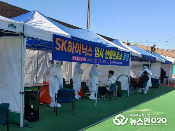 (뉴스인020 = 김성길 기자) 이천시는 17일부터 다음 달 3일까지 SK하이닉스 내부에 코로나19의 집단 확산을 선제적으로 차단하기 위해 임시 선별진료소를 운영한다.