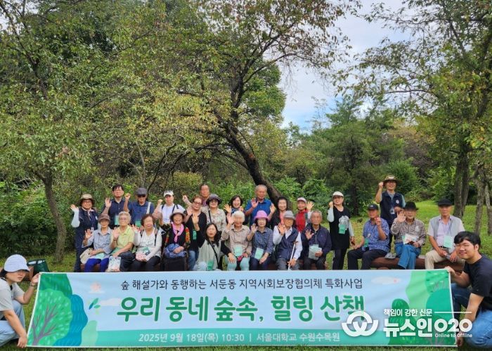 (뉴스인020 = 기자) 수원시 권선구 서둔동 지역사회보장협의체는 지난 18일, 관내 어르신 20명을 모시고 서울대농대 수원수목원에서‘우리 동네 숲속, 힐링 산책’숲 체험 나들이를 진행했다.
