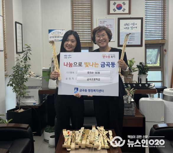 (뉴스인020 = 기자) 수원시 권선구 금곡동 행정복지센터는 지난 18일, 관내 금곡초등학교 5, 6학년 학생들이 직접 만든 효자손 50개를 기부했다고 밝혔다.