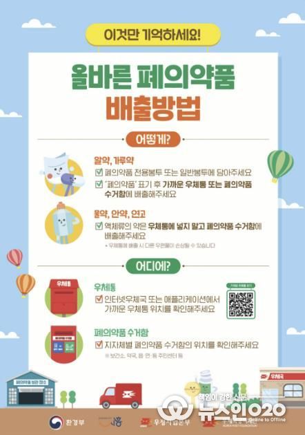 가정에서 발생한 폐의약품은 회수 봉투나 일반 편지 봉투에 ‘폐의약품’이라고 표시해 밀봉한 후 가까운 우체통에 넣으면 된다. 우체국이 이를 회수해 시흥시청에 전달하면 안전하게 처리된다. 다만, 액상 의약품은 우편물 훼손 우려가 있어 기존 보건소나 행정복지센터 전용 수거함을 이용해야 한다.