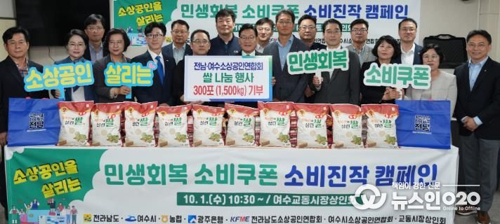 (뉴스인020 = 김성길 기자) 전라남도와 전남도 소상공인연합회는 1일 여수 교동시장에서 농협과 광주은행으로부터 기부받은 쌀(5kg) 300포를 활용해 지역민과 함께 나누는 ‘민생회복 소비쿠폰 소비 진작 캠페인’을 개최했다고 밝혔다.