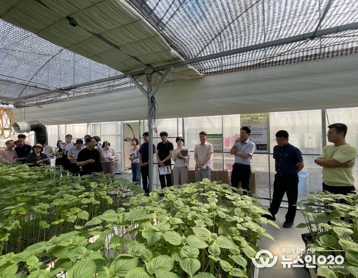 도 농업기술원은 1일 금산군 남일면 음대리 반석깻잎농장에서 잎들깨 재배농가와 연구·지도기관 관계자 등 50여 명이 참석한 가운데 ‘잎들깨 수경재배 시 누적일사량 기반 급액 방법 현장평가회’를 개최했다.