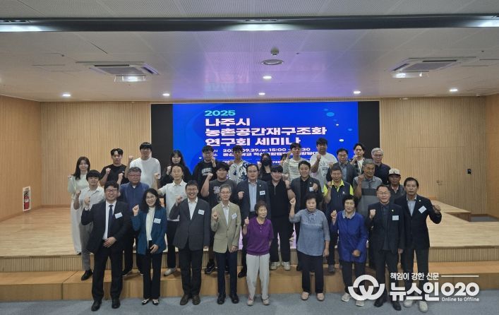 (뉴스인020 = 김성길 기자) 나주시의회 의원연구단체 ‘농촌공간 재구조화 과정 연구회’(대표의원 김강정)가 주최한 세미나가 지난 29일 빛가람동 동신대한방병원에서 읍면동 주민들과 유관기관 단체장, 언론인을 비롯한 관계자 등이 참석한 가운데 개최됐다.