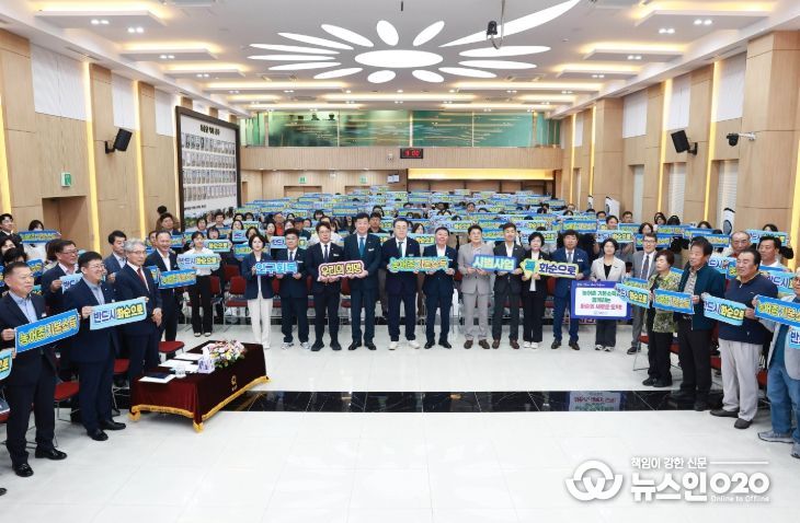 결의대회에는 구복규 화순군수, 오형열 군의회 의장을 포함한 군의원 10명이 참석해 피켓을 들고 화순군의 적극적인 참여 의지를 나타냈다.