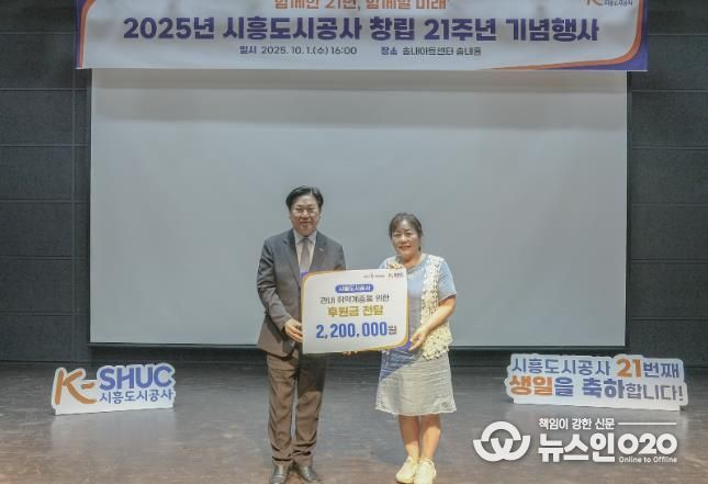 (뉴스인020 = 김성길 기자) 시흥도시공사는 지역사회의 어려운 이웃을 돕기 위해 마련한 성금 220만 원을 시흥시1%복지재단에 기탁했다고 밝혔다.