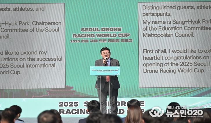 (뉴스인020 = 김성길 기자) 서울특별시의회 박상혁 교육위원장(서초 제1선거구, 국민의힘)은 10월 1일 광나루 한강드론공원에서 열린 '2025 서울 국제 드론 레이싱 월드컵'개회식에 참석하여 대회 개회를 축하하고, 참가 선수단과 관계자들을 격려했다.