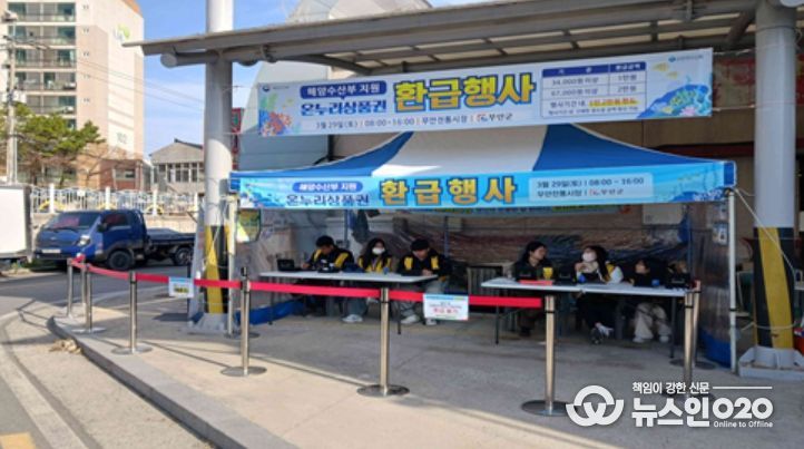 (뉴스인020 = 김성길 기자) 전남 무안군은 추석 명절을 맞이하여 국내산 수산물의 소비 촉진을 위하여 10월 4일 무안전통시장에서 온누리 상품권 환급행사를 진행한다.