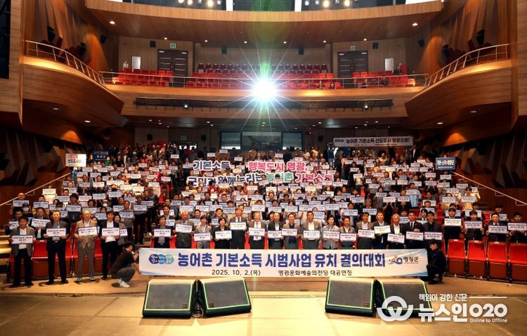 (뉴스인020 = 김성길 기자) 영광군은 지난 10월 2일 오후 2시, 영광문화예술의전당 대공연장에서 '농어촌기본소득 시범사업 유치 결의대회'를 성황리에 개최했다.