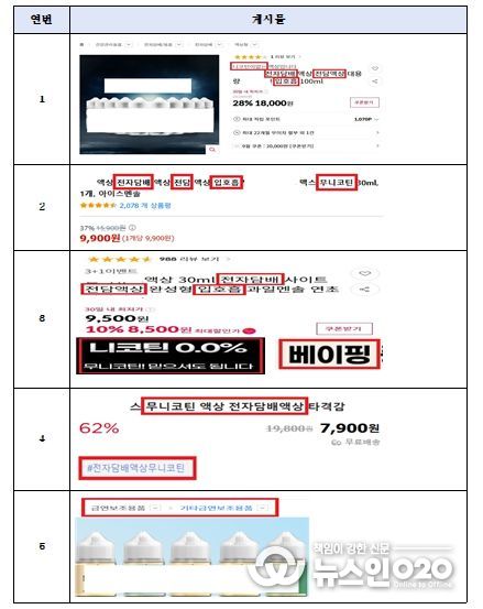 식약처, ‘무니코틴 표방 액상 흡입제품’ 온라인 광고 차단·현장 계도 실시