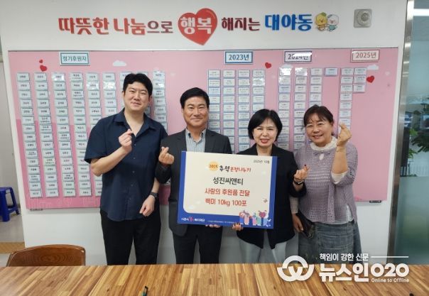 한성운 ㈜성진씨앤티 대표는 “대야동의 한 기업으로서 지역사회에 도움이 되고 싶어 기부를 결심했다”라며 “이번에 전달된 쌀이 추석을 앞두고 어려운 이웃들에게 작은 힘이 되길 바란다”라고 말했다.