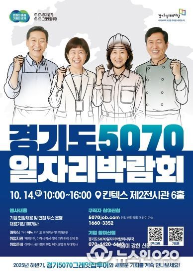 (뉴스인020 = 김성길 기자) 경기도와 경기도일자리재단은 오는 14일 고양 킨텍스에서 ‘경기도 5070 일자리 박람회’를 개최한다. 이번 박람회는 경기 북부권을 중심으로 열리며, 50~70대 중장년 구직자와 기업의 직접 연결을 통해 재취업 기회를 넓히는 자리다.