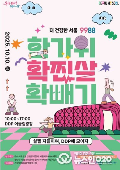 (뉴스인020 = 김성길 기자) 길었던 추석 연휴 뒤 송편과 기름진 음식으로 확.찐.살을 서울시와 함께 확~빼보자! 서울시는 10월 10일부터 11월 10일까지 시민 100명이 참여하는 ‘한가위 확.찐.살. 확빼기 챌린지’를 진행한다고 밝혔다.