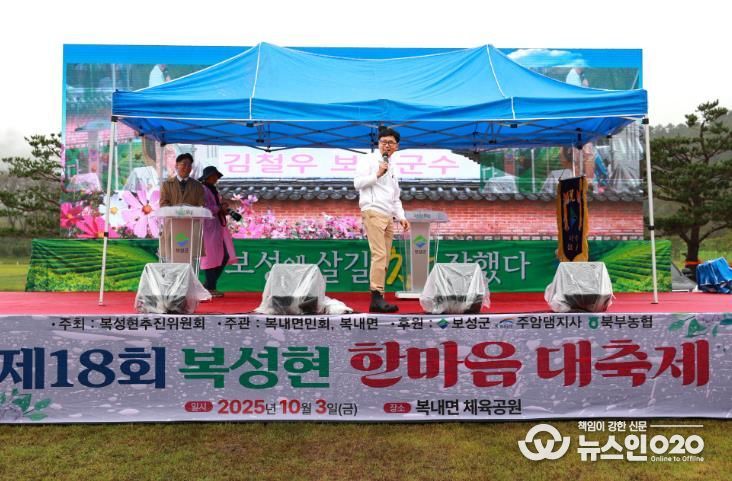 (뉴스인020 = 김성길 기자) 보성군은 지난 3일 복내면 체육공원에서 열린 ‘제18회 복성현 한마음대축제’가 지역민과 출향 향우, 관광객 등 1,000여 명이 참여한 가운데 성황리에 마무리됐다고 밝혔다.