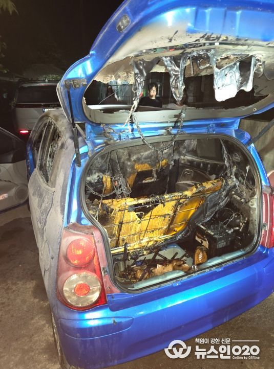 화재 당시 신고자는 차량에서 연기가 피어오르는 것을 발견하고 즉시 119에 신고한 뒤, 가정에 비치된 분말소화기를 이용해 침착하게 초기 화재를 진화했다.