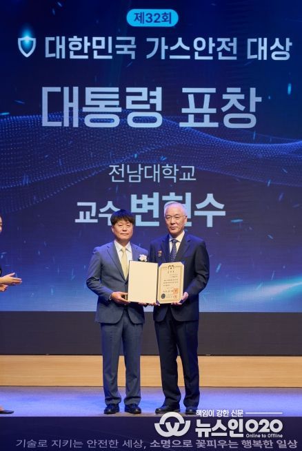 (뉴스인020 = 김성길 기자) 전남대학교 화공생명공학과 변헌수 교수가 산업통상자원부에서 주최하고 한국가스안전공사(사장 박경국)가 주관한 ‘제32회 대한민국 가스안전 대상’에서 대통령 표창의 영예를 안았다.