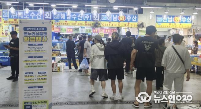 (뉴스인020 = 김성길 기자) 안산시는 올해 처음 실시한 안산시농수산물도매시장 추석 온누리상품권 환급행사(10월 1일~10월 5일)를 시민들의 큰 호응 속에 마무리했다고 13일 밝혔다.